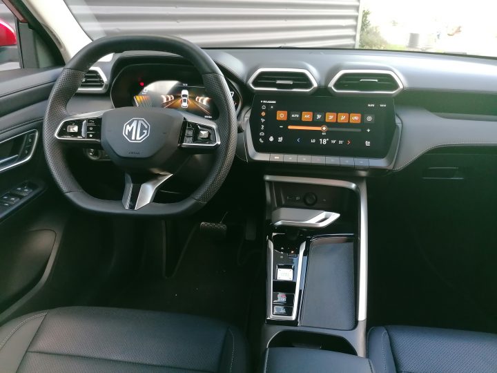Jednako je i u interijeru, koji je moderniziran, opremljen s dva velika ekrana i nažalost nema funkcijske tipke za klima-uređaj. Na traci s nekoliko prekidača nema osnovnih funkcija klima-uređaja pa ćete ih morati potražiti na infotainment uređaju, koji bi mogao biti malo brži u odzivu na zapovijedi. Kabina je velika, a isto vrijedi i za prtljažnik. Novi MG ZS nije samo narastao izvana, nego je sad i mnogo funkcionalniji obiteljski automobil.