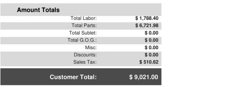 Novo svjetlo košta 6721 dolar. Dodajte još 1.788,40 dolara za rad i ukupni popravak penje se na 9.021 dolar, kada se uključi i porez na promet.