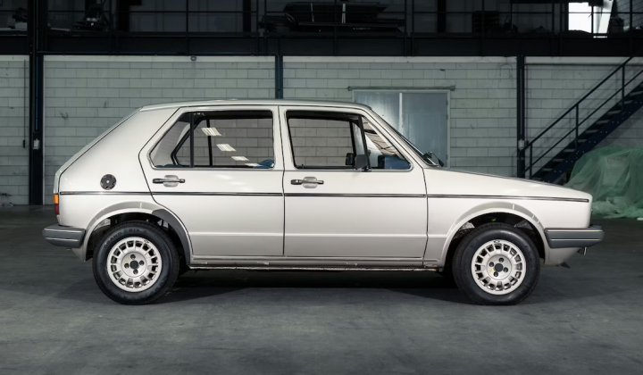 Prvi Golf proizveden je 29. ožujka 1974. Za razliku od Bube, Golf je bio opremljen vodom hlađenim četverocilindričnim motorom, samonosećom karoserijom, pogonom na prednje kotače, a dizajnirao ga je Giugiaro. Godine 1978. Golf je dobio blagi redizajn. Umjesto čeličnih branika, ugrađeni su plastični branici i napravljene su neke manje preinake. Primjerak koji se ovdje nudi nastao je u tvornici u Bruxellesu (tvorcnu je naslijedio Audi, a zatvorena je prije nekoliko godina). Vjerojatno je riječ o posljednjem proizvedenom Golfu 1 u tvornici u Bruxellesu 1983. godine. Riječ je o verziji s 5 vrata u Diamond Silver Metallic boji i opremljen je, između ostalog i aluminijskim naplatcima s “ekstra širokim” Goodyear gumama. Nema radija ni naslona za glavu. Motor od 1500 ccm sa 70 KS nema puno problema s Golfom koji ima masu od samo 800 kg.