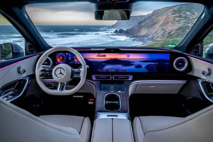 GLC EQ je dulji od BMW-a iX3, naprimjer. Posljedica promišljenog dizajna je otpor zraka od samo 0,26 Cd. Također je punih 10 centimetara dulji od EQC-a. Kao rezultat toga, sprijeda ima puno mjesta u svim smjerovima, čak i ako ste malo viši, s iznadprosječnom udobnošću sjedenja. Također ima dovoljno prostora za glavu i noge straga. Plus je i što GLC EQ ima i prednji prtljažnik (frunk), koji je dobar za 128 litara prtljage i odličan dodatak prtljažniku od 570 litara. Dodajmo i da je GLC EQ dobra vijest i za kampiste jer je dopušteno vući prikolicu tešku 2400 kilograma. Unutrašnjost ostavlja potpuno profinjen dojam jer sve što dodirnete ugodno je na dodir. Nadzornom pločom dominira velika staklena ploča s jasno čitljivim instrumentima direktno ispred vas. Pored nje nalazi se multimedijski sustav, a desno od njega (kao opcija) dodatni infotainment zaslon za suvozača. Svime se upravlja bez napora, posebno zahvaljujući odličnom glasovnom upravljanju. MBUX Hyperscreen je opcija i on se rasprostire po cijeloj širini prednjeg dijela kokpita (na slici dolje).